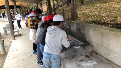 後片付けです。この後、厳しいチェックが待っています。がんばれ!