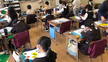 2年生の図画工作科の学習の様子です。カッターナイフを使った工作に初挑戦。段ボール紙にした絵を描き、カッターナイフを使って切り抜いています。そこにカラーシートを貼って完成です。光をあてるときれいなコントラストになることでしょう。できあがりが楽しみですね。