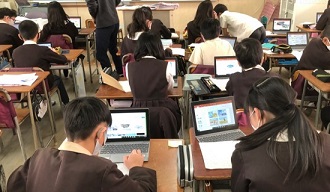 5年生の「総合的な学習」の様子です。環境問題について、自分が興味のある題材を選びインターネットで調べたことを、プレゼンテーションソフトを使ってまとめています。一人一台パソコンが整備されて、活用がしやすくなりました。