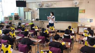 5年生では、専科の授業も始まりました。理科担当の先生との初顔合わせです。