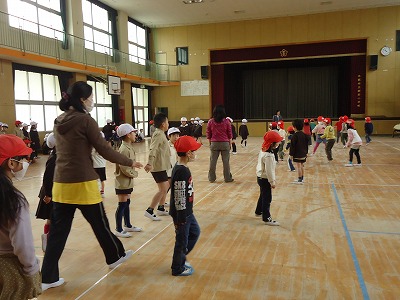 1年生は、利き手と反対の手でボールを投げるのに苦労しながらも、優しく声をかける姿が見られました。