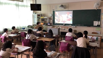 5時間目ですが、2年、5年はNHK for Shoolの動画の視聴学習をしていました。2年生は音楽の鑑賞学習、4年生は道徳(ルールについて)の学習でした。写真は4年生です。