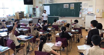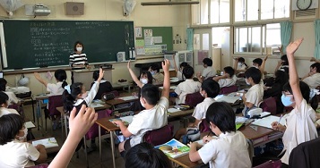 写真下は2年生の国語の学習の様子です。2年生も、先生ではなく友だちに意見をいうようにトレーニング中。少しずつ一体感が生まれてきました。