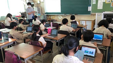 午後からは、自宅組と教室組に分かれての学習です。NHK for Schoolや教育委員会作成の動画を見たりしています。