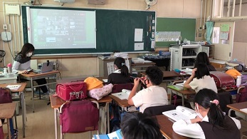 6時間目の6年生は、双方向通信学習に取り組みました。(写真中、下)