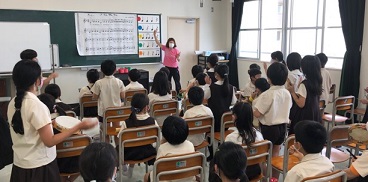 3年生の音楽の学習の様子です。久しぶりの音楽。打楽器でのリズム表現を中心に学習しています。