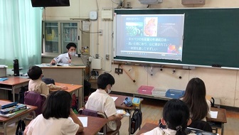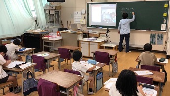 10時から10時35分は、2〜6年全学級でオンライン双方向通信授業にチャレンジしました。