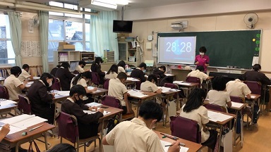 1時間目、全国学力・学習状況調査の国語に取り組む6年生です。