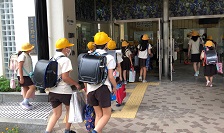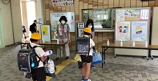 夏休みの絵画や工作、自由研究など、いつも以上の荷物をもって登校してきた子どもたちです。
