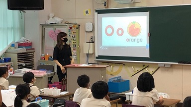 毎週火曜日、金曜日の13時45分〜14時は、全学年が英語の短時間学習に取り組んでいます。写真は3年生の様子です。入学したときにはすでに短時間学習が始まっている子どもたちです。英語にもずいぶんと慣れてきました。