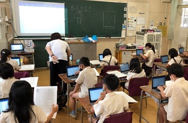 2年生の学習の様子です。ちょっと難しいですが、キーボード入力に挑戦していました。