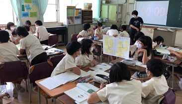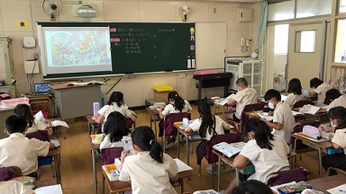 3年生の社会科の学習の様子です。2学期初めの単元は「火事からくらしを守る」です。今日は、「消防署の人たちはどんな仕事をしているのだろう」が学習問題。消防署の人たちの仕事について、教科書をみながらノートにまとめています。社会の学習を始めて間もない3年生ですが、ずいぶんと調べる力がついてきました。