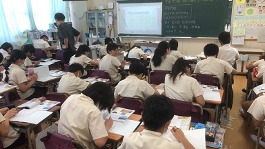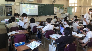 子どもたちは、届く場所や運ぶ方法を調べた後、先生から「なぜ費用をかけてまで全国に届けるの?」という問いをなげかけられました。まずは、自分の考えをノートに書いた後、周りの友だちと意見交流しながら考えを深めていました。