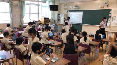 2年生の学習の様子です。今日は、ICT支援員さんが来てくださる日なので、そこに合わせてパソコンを使う学習を進めています。今日は、キーボードを外してタブレットにしてカメラ機能を使う学習を進めていました。
