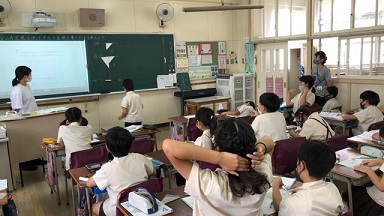4年生の算数の学習の様子です。三角定規使って平行な線を描くにはどうした良いかを考えて発表していました。