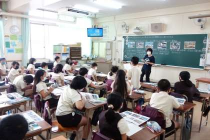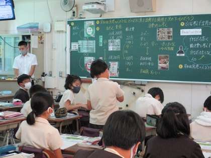5年生です。単元名は「水産業のさかんな地域」。まずは、日本は世界でも魚や貝をよく食べている国であることを知り、水産業について知りたいこと、調べたいことを出し合いました。そして、「水産業に関わる人は、どのように魚をとり消費者に届けているのだろう」という問いを持ちました。教科書では、長崎が取り上げられていますが、興味・関心を高め、学習意欲が向上するようにと、大阪府の岸和田漁港を取り上げて教材化しました。