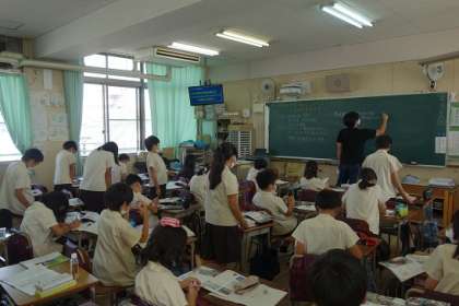 単元7時間目の授業の様子です。5年生は日本の産業学習です。「日本全国の漁場はどのようになっているのだろう」という問いのもと、教科書に取り上げられている長崎漁港を中心に、岸和田漁港と比べながら調べていきました。