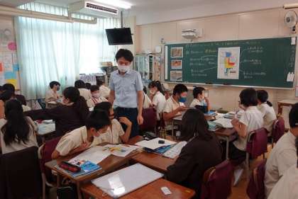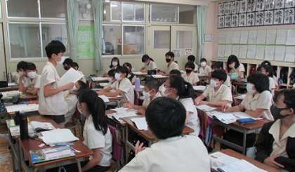 単元5時間目の学習の様子です。2時間目から4時間目までは、ほぼ教科書にある内容に沿って学習してきましたが、この時間は、教科書にもない教材を開発しました。それは「大阪の町づくりと天下統一」です(大阪歴史博物館の大澤館長に多大なるご協力をいただきました)。資料から、秀吉は大阪城を築いただけではなく、武家地に先に妻子を住まわせたり、身分によって住む場所を決めたり、税を免除して町人を住まわせたりしたことを調べ、秀吉の意図について考えました。