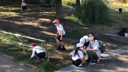 バッタ天国や!と、草むらで遊ぶ子や、大量のどんぐりを拾っている子も。これも野田ではなかなかできない活動です。