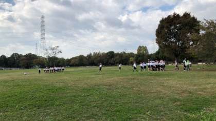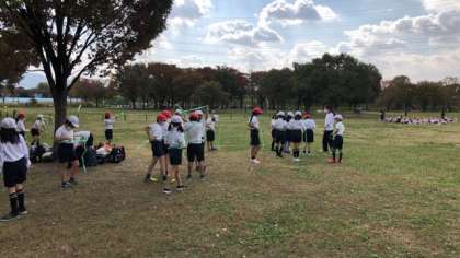 学年みんな遊びその2は、クラス対抗王様取りゲームです。現在、作戦タイム中。