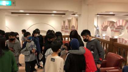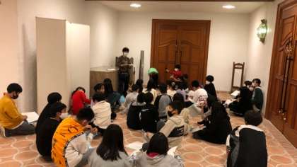保健係は今日の体調チェックカードを担当の先生に報告。室長はミーティング。これからの過ごし方と明日の朝の留意点の説明を受けています。
