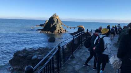 9時10分に二見プラザに着きました。まずは夫婦岩まで散歩。雲ひとつなく、空気も澄んでいて、対岸の愛知県渥美半島、知多半島も見えます。