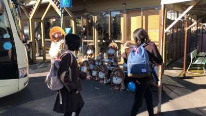信楽陶芸村国道店に到着です。たくさんのタヌキがお出迎えです。
