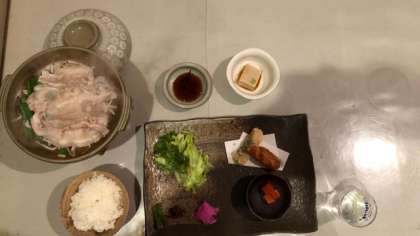メインは豚肉の陶板焼。当然、信楽焼ですよね。