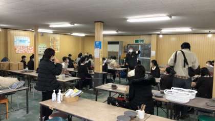 本来ならば1カ所で同時に体験するのですが、コロナ対策のため無理を言って広く使わせてもらっています。
