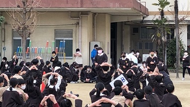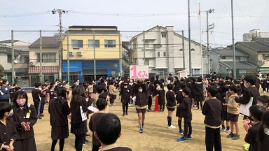このところ感染拡大防止のために、児童集会もずっと集会委員会が苦心して、放送でおこなっていましたが、久しいぶりに全校児童が運動場に集まりました。