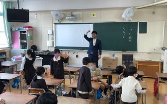 教室では、教科者やいろいろな配布物をもらった後、学級開き。先生とゲームをして楽しんだり、どんな1年にしていくかのお話を聞いたりしていました。