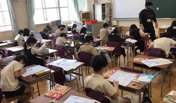 4年生の社会科の学習の様子です。4年生は主に大阪府の学習を進めていきますが、47都道府県の名前を覚えるのも学習です。今日は地図帳をみながらワークシートに書き込む学習を進めていました。