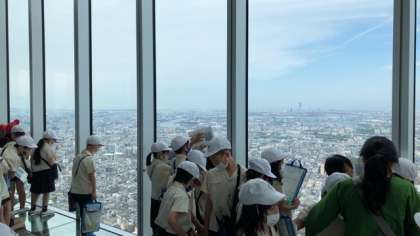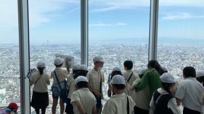 西側です。大阪湾をのぞみます。近くには、行きの車内から見えた京セラドームもかくにんできました。