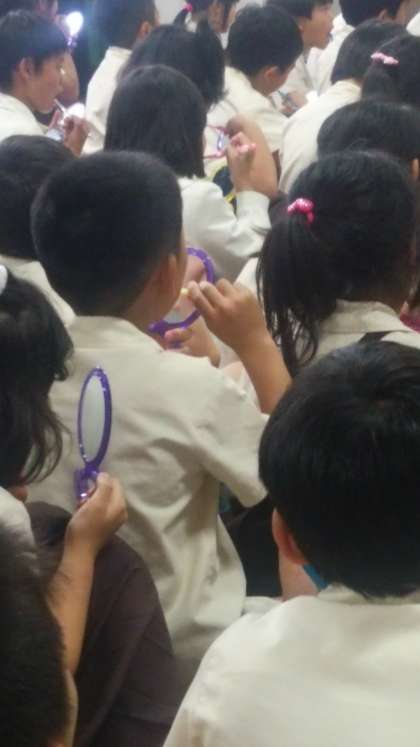 手鏡を見て、一生懸命に歯を磨いていた子どもたちです。これからは、「食べたら磨こう!」を合言葉にしよう、と衛生士さんと約束していました。