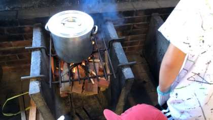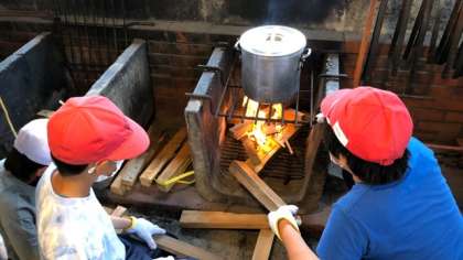 早い班は、かまどに火も入り、ご飯を炊き始めています。