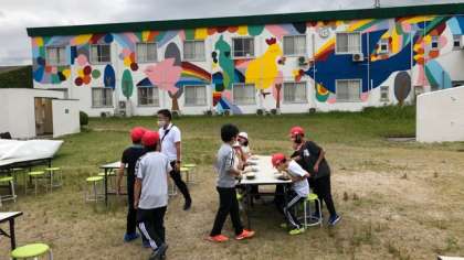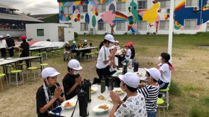 7班、3班が完成。屋外に仮設食堂を設置して食べ始めました。