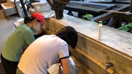 美味しくいただいた後は、後片付け。厳しいチェックが待っています。