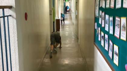 昨日、一昨日とお世話になった宿舎を「着た時よりも綺麗に」を合言葉に、頑張って掃除をしています。