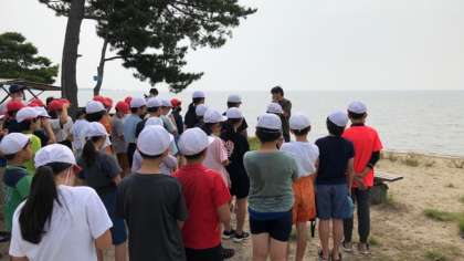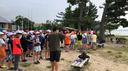 前半は、A?B班が湖畔散策、C?D班が筏づくりです。