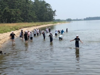 散策のC、D組は、すでに筏で濡れていることもあって、弾けモードで水遊びです。