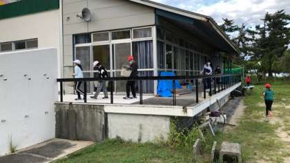 活動開始です。材料をもらいに行ったり、鍋を借りに行ったりしています。