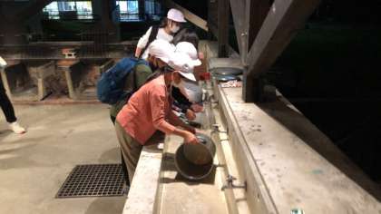 食事の後片付けです。厳しいチェックが待っています。