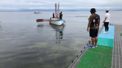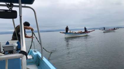 桟橋近くまでは救助艇に引っ張ってもらって帰ってきました。
