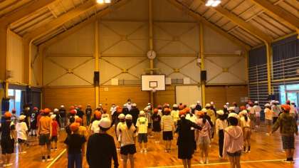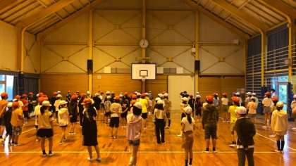3日目の活動が始まりました。今日は昨日より30分早く起きて、先に荷物の整理をしてからの朝の集いです。