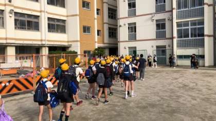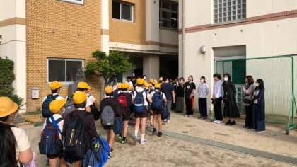 たくさんの保護者や先生方に見送られ、学校を出発しました。