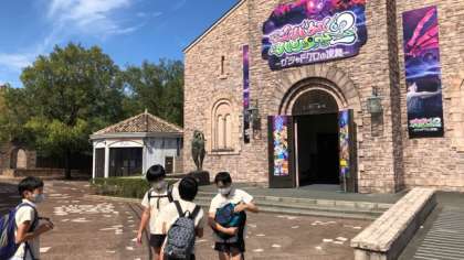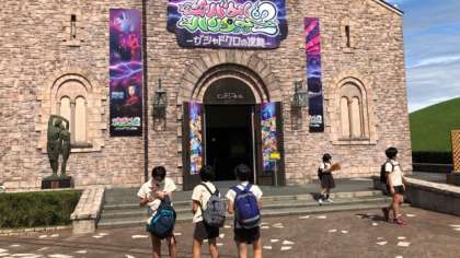 お化けを倒すと得点がもらえるゲームだそうです。お化けが怖い子は外で待機中。