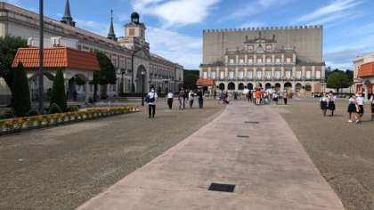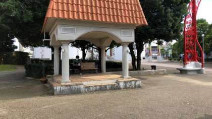 シベレス広場付近のベンチで先生が一人座っています。緊急の連絡先。子どもたちには、何かあったらここには必ず先生がいると伝えています。これも仕事。決してサボってるわけではありません。(笑)