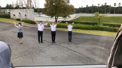 8時35分、ホテルの方に見送っていただき、ホテル志摩スペイン村出発し、二見プラザに向かいます。現在は雨はやんでいます。何とかこのままもってくれれば良いのですが・・