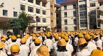 コロナ感染第7波の到来と、熱中症へのリスク軽減のため、6月末よりオンライン形式で全校朝会を行ってきましたが、イエローステージになったことと、朝は比較的涼しくなったこともあり、今日は久しぶりに運動場での全校朝会を行いました。