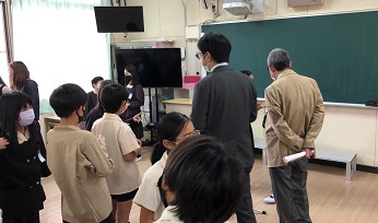 今日までの事前学習として、子どもたちはコンビを組み、コンビ名も考え、吉本興業からいただいたミニネタをアレンジしたり、中にはオリジナルのネタを考えたり…